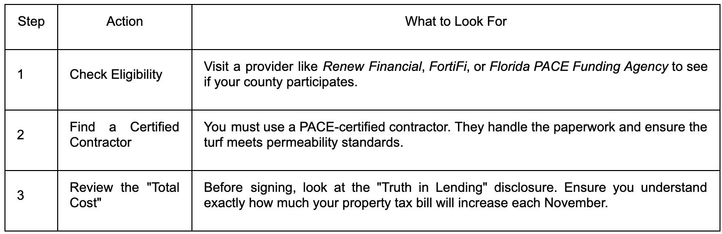 But synthetic turf isn't cheap—professional installation for a standard yard can easily range from $5,000 to $15,000. If you don't have that cash sitting in a drawer, the Florida PACE (Property Assessed Clean Energy) program might be your answer.