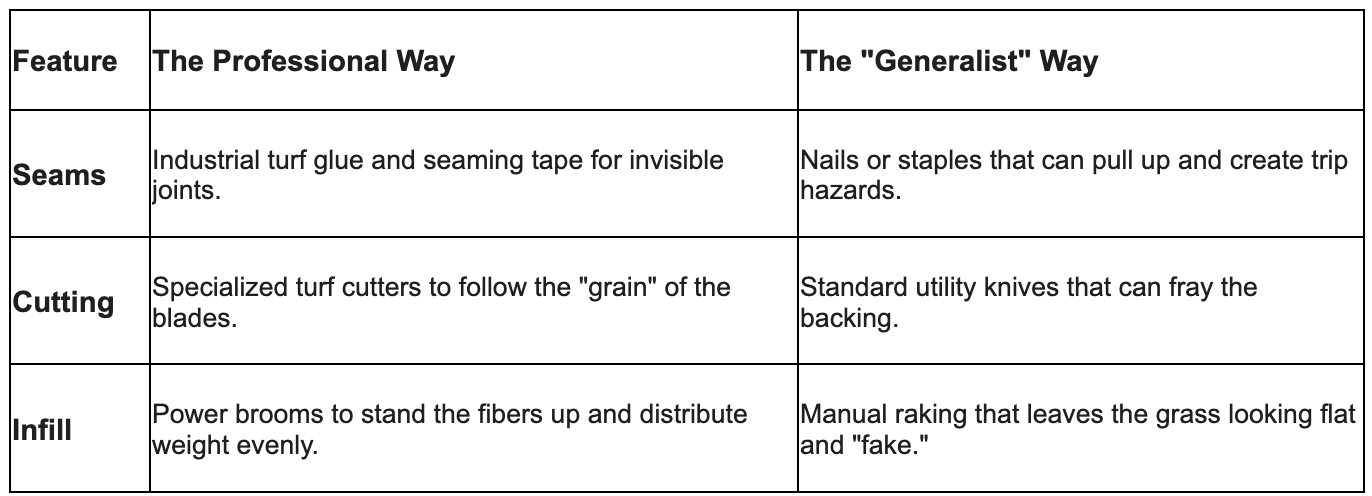 The Bottom Line: A landscaper makes your yard look great for a season. A professional turf installer ensures your yard looks perfect for a decade. If you’re going to invest in a maintenance-free lifestyle, do it right the first time. Don't let a "good deal" turn into a "redo" two years down the road.